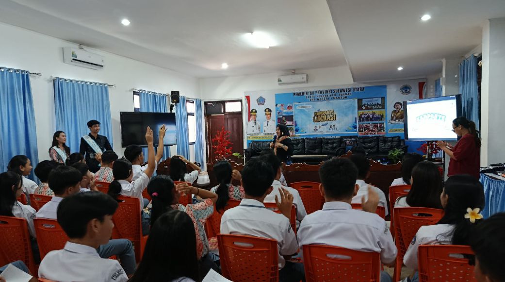 BisnisManado.com, Manado – Semangat literasi kembali digaungkan di kalangan pelajar. Kali ini, Ikatan Putra-Putri Literasi Sulawesi Utara (Sulut) menggelar kampanye literasi di SMA Negeri 1 Manado. Kegiatan ini bertujuan untuk menumbuhkan kembali minat baca di kalangan siswa, serta mendorong lahirnya generasi yang kritis dan imajinatif melalui buku.