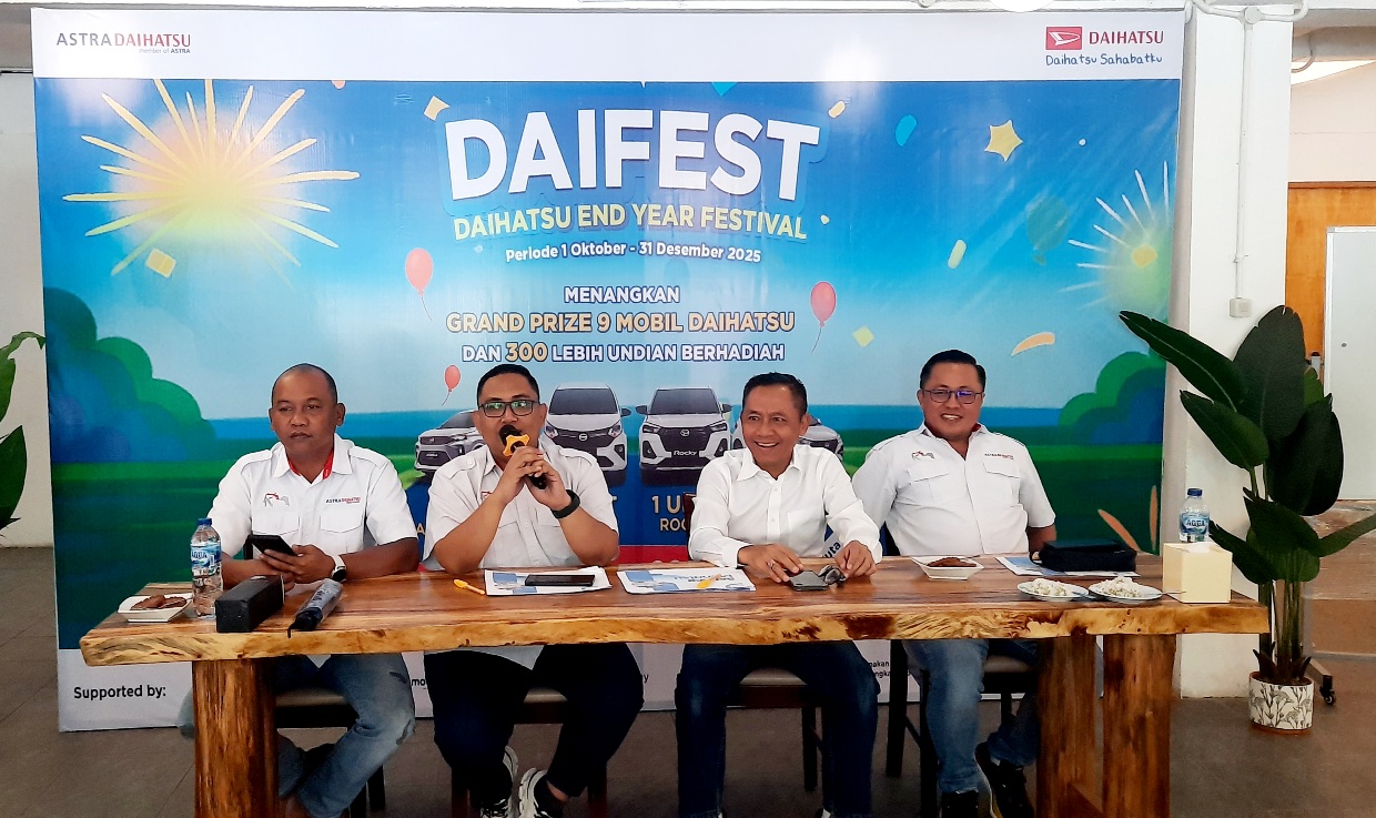 BisnisManado.com, Manado – Menyambut penutupan tahun 2025, Daihatsu kembali menghadirkan program spesial akhir tahun bertajuk DAIFEST (Daihatsu End Year Festival) 2025. Program ini resmi dimulai sejak 1 Oktober dan akan berlangsung hingga 31 Desember 2025. Program ini  disampaikan Kepala Daihatsu DSO Manado Boulevard Ari Sugi dalam Media Gathering Sabtu, 18 Oktober 2025.