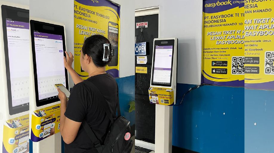 Mesin layanan mandiri ini memungkinkan penumpang melakukan check-in, pengecekan boarding pass, hingga pencetakan tiket secara langsung, tanpa harus mengantri di loket atau kantor Easybook. Mesin tersebut ditempatkan di area pintu masuk Terminal Penumpang, tepat di samping kantor Easybook, sehingga mudah diakses setiap penumpang sejak memasuki terminal.