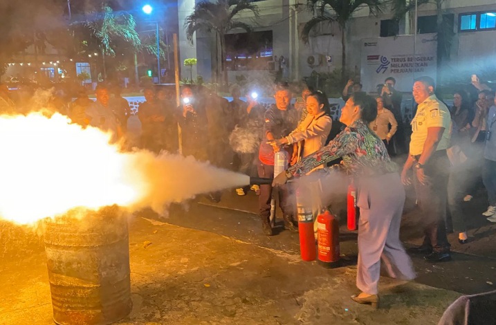 Selain pemaparan materi, kegiatan juga dilengkapi dengan simulasi. Karyawan mempraktikkan penggunaan alat pemadam api ringan (APAR) serta mengikuti skenario evakuasi darurat.